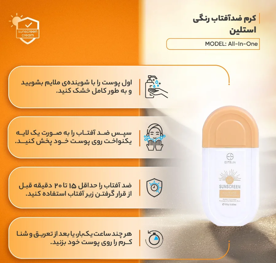 آیا به دنبال یک ضدآفتاب هستید که فراتر از محافظت ساده عمل کند و همزمان به زیبایی طبیعی پوست شما بیفزاید؟ ضدآفتاب رنگی استیلن مدل All-in-One، انتخابی ایده‌آل برای شماست. این محصول نوآورانه از برند معتبر Estelin، با فرمولاسیون پیشرفته خود، نه تنها پوست شما را در برابر آسیب‌های مضر تابش آفتاب محافظت می‌کند، بلکه با پوشش رنگی ملایم خود، عیوب پوست را پوشانده و ظاهری یکدست و درخشان به آن می‌بخشد. با کرم ضدآفتاب استیلن، دیگر نیازی به چندین محصول برای مراقبت از پوست و آرایش روزانه خود نخواهید داشت.